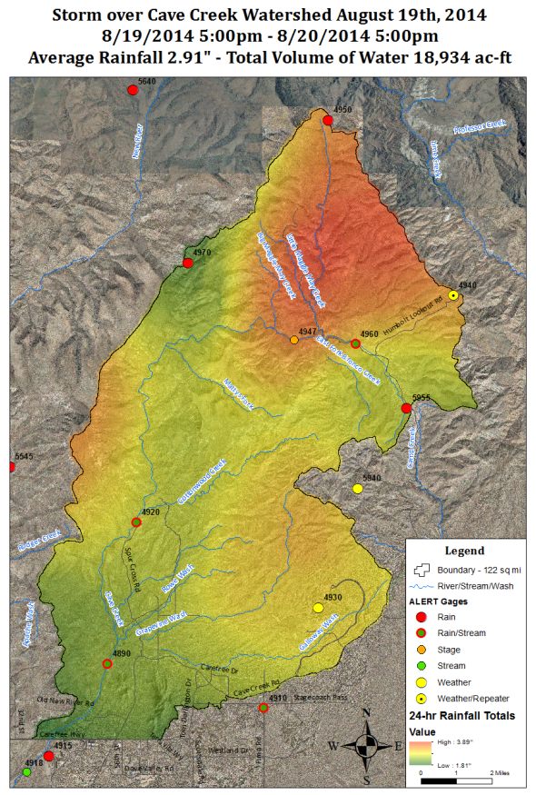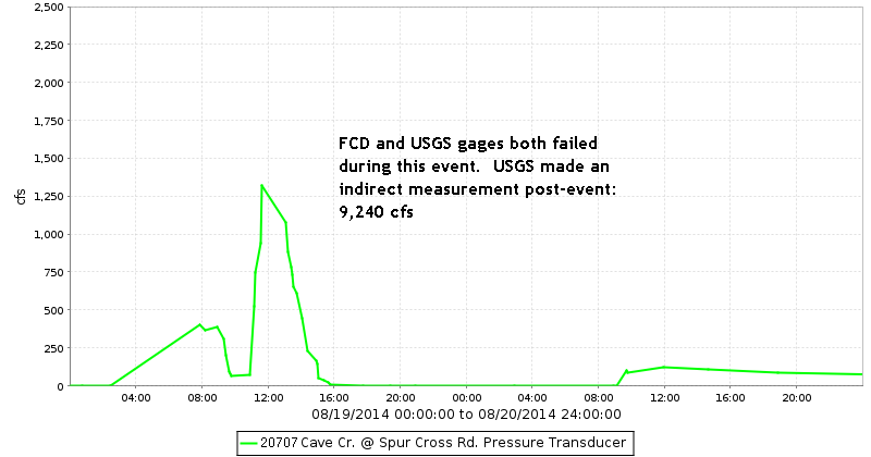 Extreme for Period of Record: 17,190 cfs on 08/19/2014 at 12:27 MST, 12.75 ft.