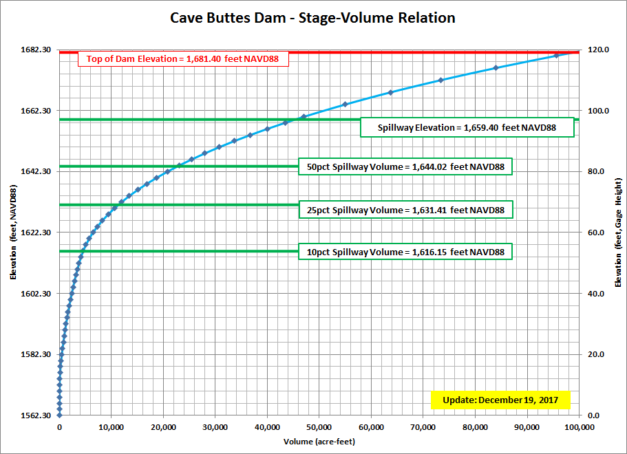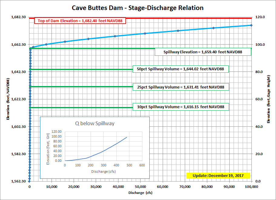 | ZERO GAGE HEIGHT ELEVATION (POOL) | 1,562.30 feet NAVD88 for pool staff gages |